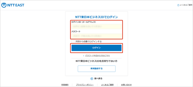 - URLにクリックすると、NTT東日本ビジネスIDログインページが表示される。