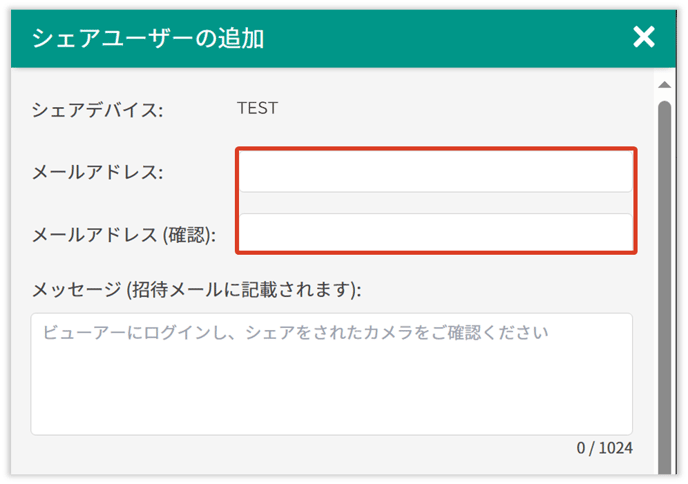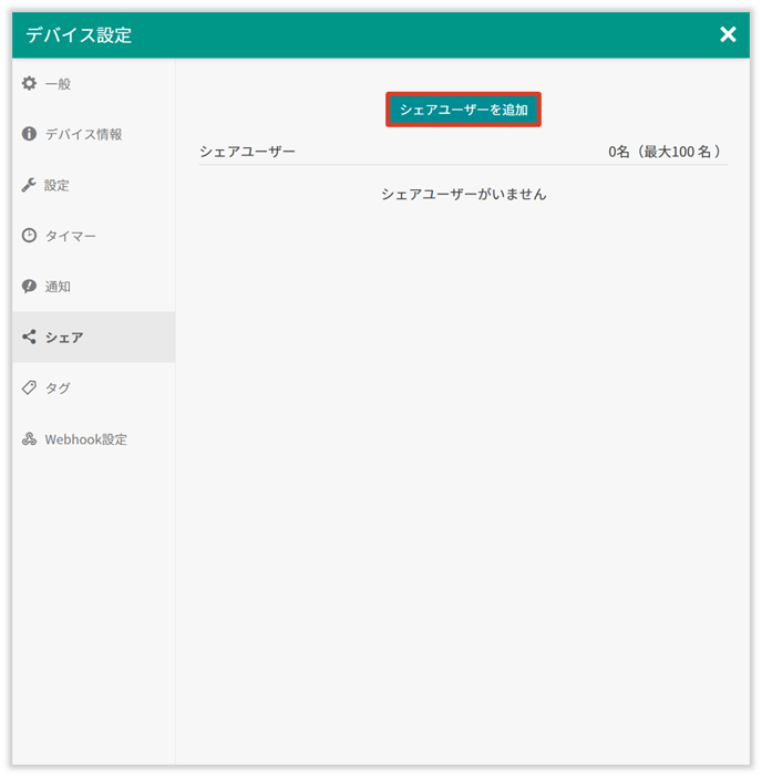 • 「シェア」>「シェアユーザーを追加」をクリックします。