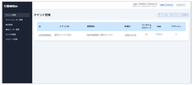 - VMS(ダッシュボード)への接続方法はこちらをご参照ください。