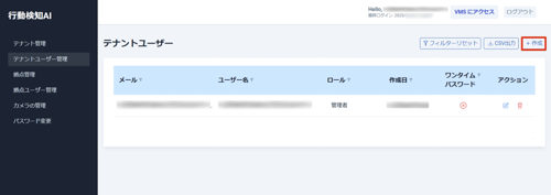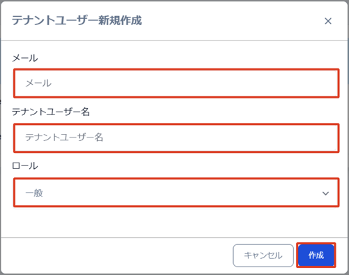 管理者権限のユーザーでテナントグループの新規ユーザーの登録ができます。