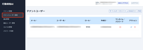 ログイン後、「テナントユーザー管理」をクリックします。