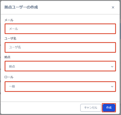 • 拠点:ユーザーを登録する拠点を選択します。