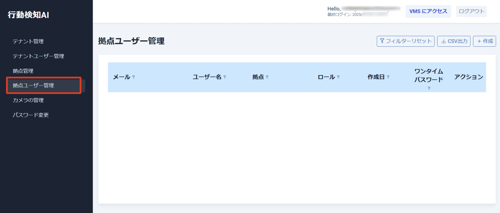 ログイン後、「拠点ユーザー管理」をクリックします。